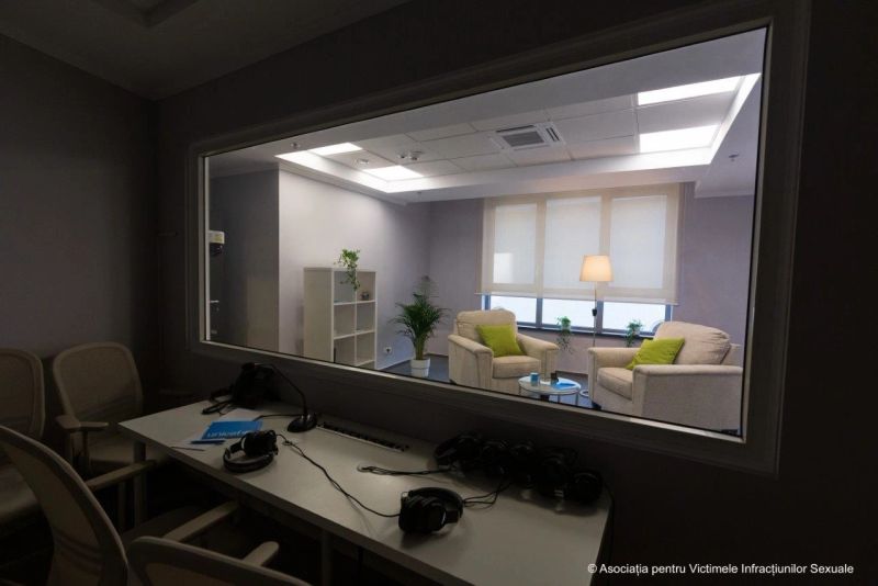 Spațiul include și o cameră tehnică, separată printr-un un perete izolat fonic și o fereastră unidirecțională, și a fost amenajat de către Asociația pentru Victimele Infracțiunilor Sexuale cu sprijinul UNICEF în România, în cadrul proiectului „Justiție pentru copiii victime ale abuzului sexual".