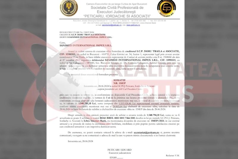 "Ce ticăloși sunt! Au făcut această somație în 28 iunie, iar ei ne dau termen o zi de la primire să luăm legătura ci ei pentru a discuta legat de această somație. 28 era vineri. Oricum nu am primit-o pe 28, ci azi dimineață, pe la ora 10 (1 iulie, n.r.), iar banca era deja somată și ne-au blocat conturile.