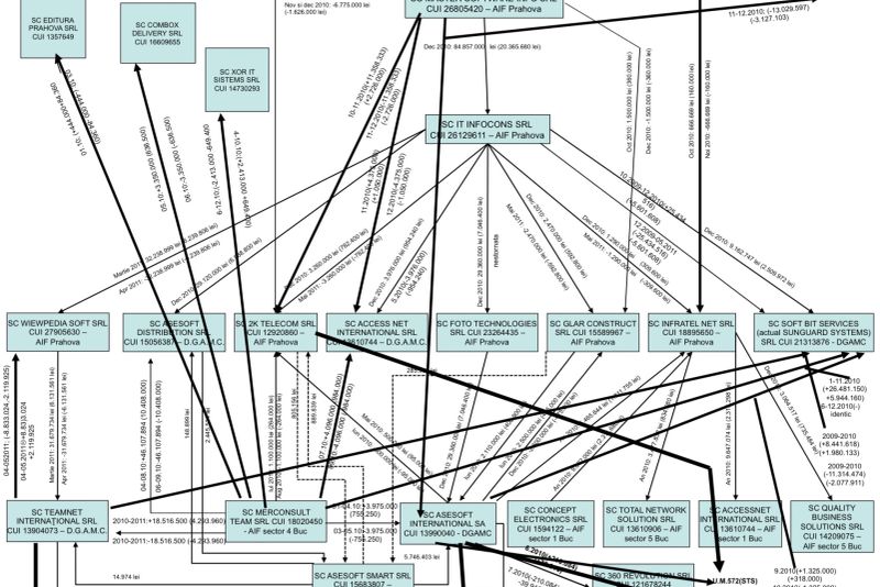 Beneficiari sunt și apropiații fugarului care primesc în continuare contracte publice și gestionează informații sensibile pentru securitatea României. După acest model funcționează zeci de societăți active din București și Ploiești. Sunt vizate contracte cu instituțiile de forță și controlul softurilor cu informații extrem de importante, transmit jurnaliștii. În tot acest timp, grupul infracțional organizat ar fi funcționat cu susținere politică de la cel mai înalt nivel și protecția statului paralel.