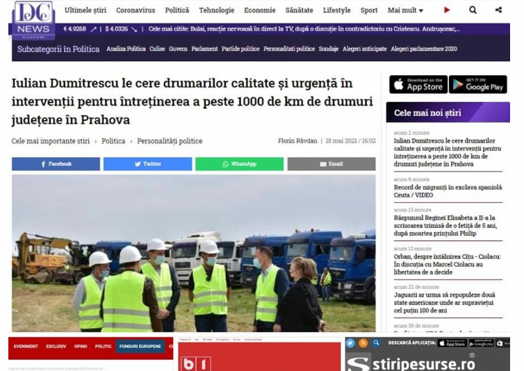 Așa cum se poate vedea în postarea din data de 11 mai 2021, ce apare pe contul de facebook “Iulian Dumitrescu”, se va demara o licitație în vederea întreținerii și reparării a 1000 km de drumuri județene într-un termen de 48 de luni pe raza judetului Prahova!!!