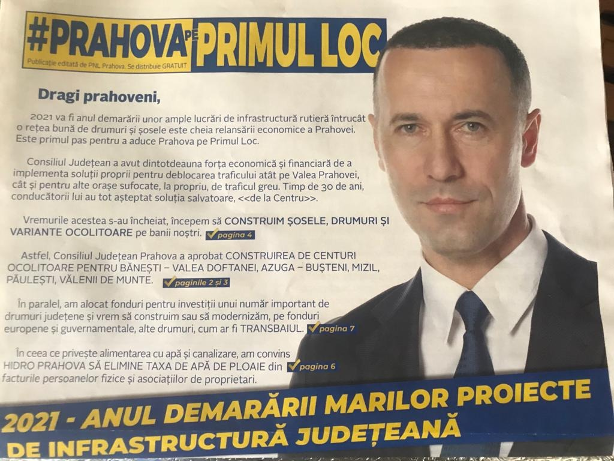 Pe prima pagină apare o fotografie cu cel dintâi bărbat al județului și un slogan pompos “ #PRAHOVA PE PRIMUL LOC “